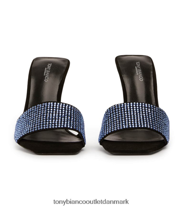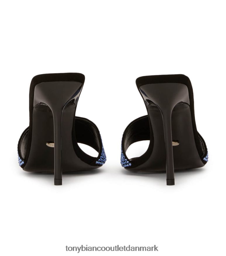 tilføj noget seriøst glimt til dit næste look med vores naomi diamanthæle. Denne slip-on-mule er beklædt med blå krystal diamantdetaljer og en glat sort ruskindskrop, og er din nye bedste ven.
