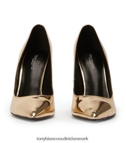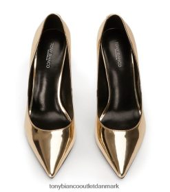 perfekte til enhver lejlighed er anja guld stilethæle. hun fanger elegancen af en klassisk pumpe, med en scooped overdel for at skabe en flatterende silhuet og stilethæl, hun er et must have til din sko-drobe-kollektion.