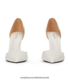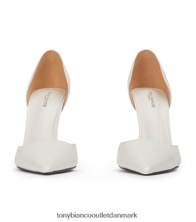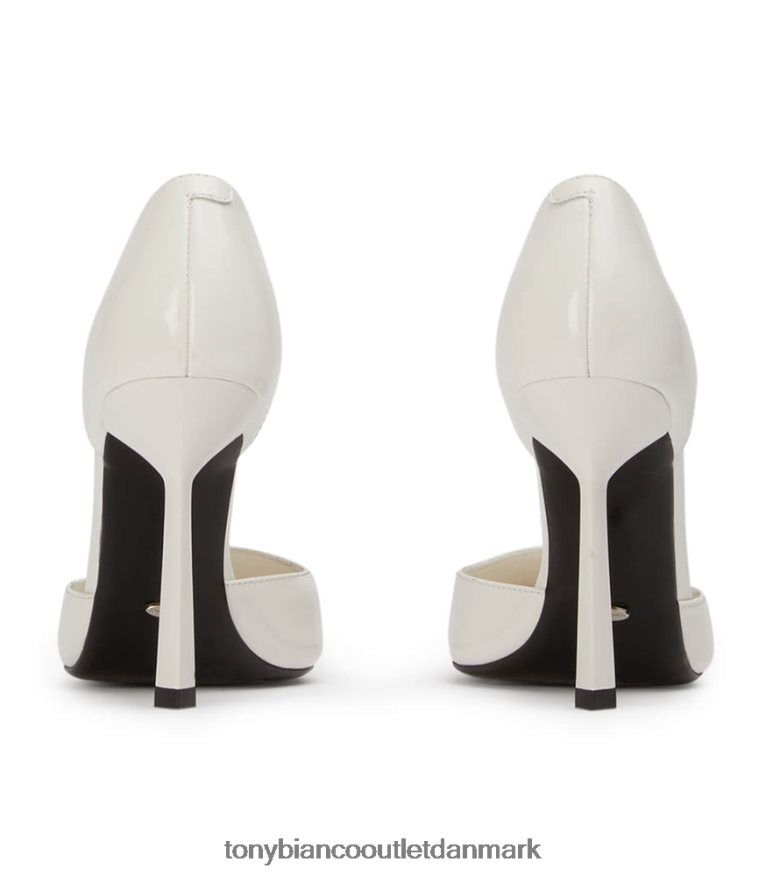 gør entré i galla. vores moderne fortolkning af den klassiske pumpe, med en elegant spids tå-form, asymmetrisk hæl og firkantet vamp. forenklet i design, denne hvide, hi-shine hæl vil sikre alsidighed hele sæsonen.