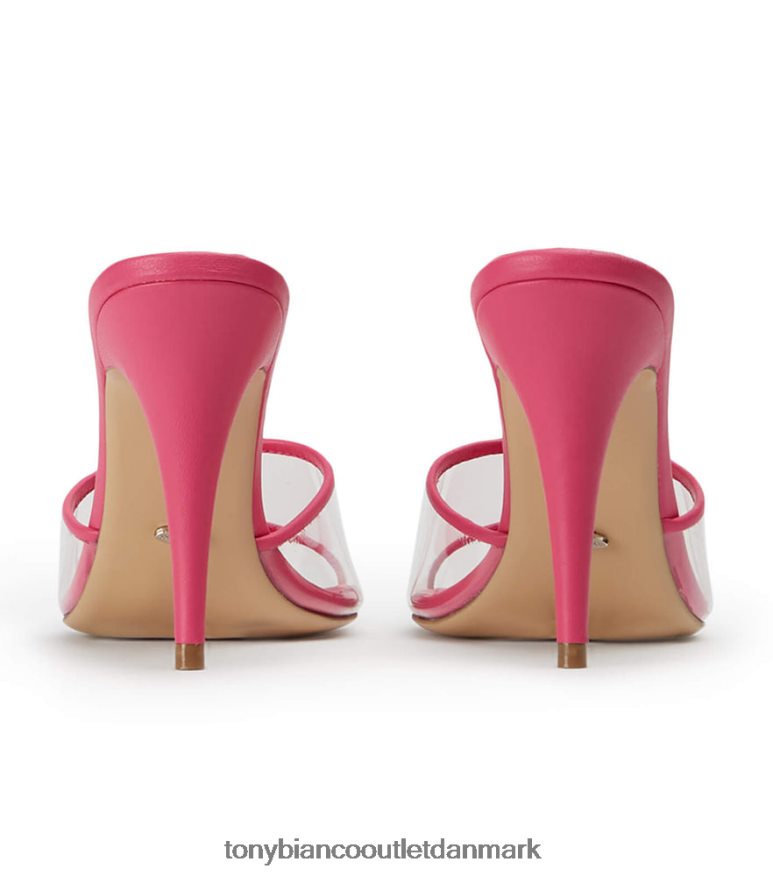 det er en minimalistisk silhuet med riana vinylit-muldyrene. iført en livlig neon-pink sål, stilethæl og åben tå, denne pop af farve parret tilbage med en trendy klar overdel, giver det bedste fra begge verdener denne sæson.