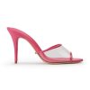 det er en minimalistisk silhuet med riana vinylit-muldyrene. Iført en livlig neongrøn sål, stilethæl og åben tå giver denne farvetone med en trendy klar overdel det bedste fra begge verdener denne sæson.