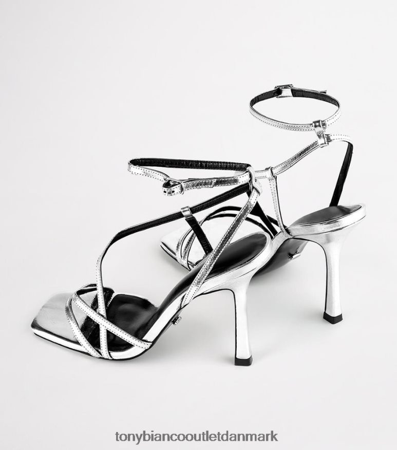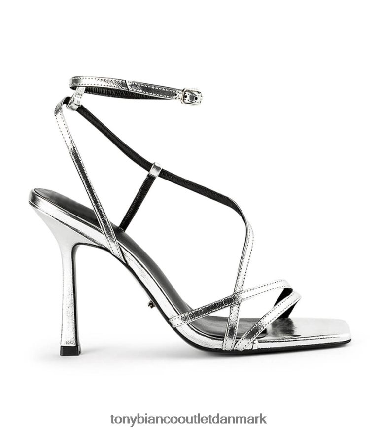 spænd dig ind i den nye sæsons stil med franci-hælen i sølvfolie. Dette design er indkapslet med tynde, slankende stropper, og har en trendy firkantet tå-form, en polstret fodseng for ekstra komfort, omsluttende ankelstropper og er afsluttet med et sølvtonet spænde. sat oven på en 10,5 cm stilethæl.