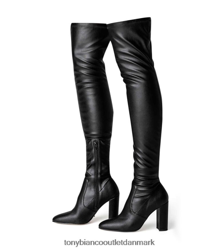 komplimenter med de nye bloom sorte over-knæ-støvler. dette lårhøje øjeblik viser en læderlignende finish, blød mandeltå og blokhæl for at gøre disse vinterstøvler til en helt egen liga.