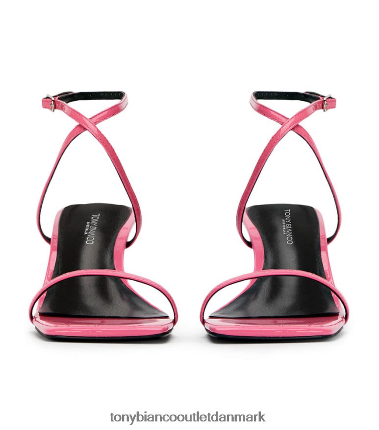 introduktion af axent killingemuldyr i flamingo pink. Denne slanke og sofistikerede stil har en ikonisk kortere stilethæl og en åben firkantet tå-form, afsluttet med tynde stropper og en minispænde.