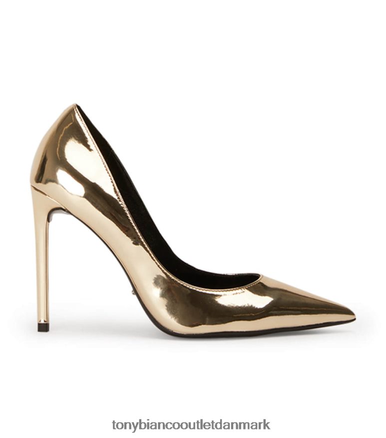 perfekte til enhver lejlighed er anja guld stilethæle. hun fanger elegancen af en klassisk pumpe, med en scooped overdel for at skabe en flatterende silhuet og stilethæl, hun er et must have til din sko-drobe-kollektion.