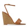 vi elsker sommer denne sæson med dims de flettede kiler. med et rigt honningstof med vævet overdel, slank ankelrem for en benforlængende effekt, mens den er sat oven på en høj kilehæl. denne stil er din næste ferie personificeret.