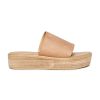 sig hej for at trøste! energisandalerne har en neutral slip-on-sandal i læder med en ring-peep-toe med en afrundet tå-form og en blotlagt flad træform.