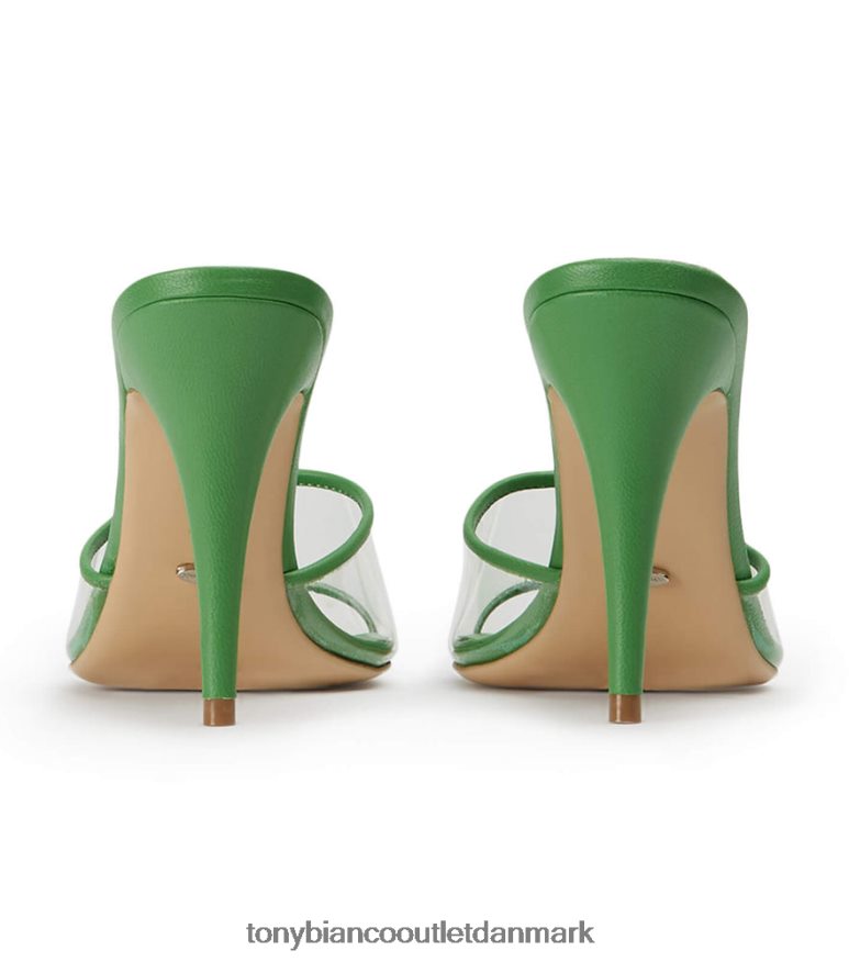 det er en minimalistisk silhuet med riana vinylit-muldyrene. Iført en livlig neongrøn sål, stilethæl og åben tå giver denne farvetone med en trendy klar overdel det bedste fra begge verdener denne sæson.