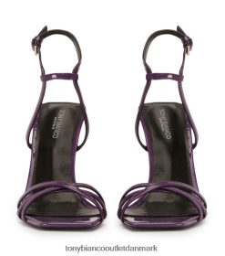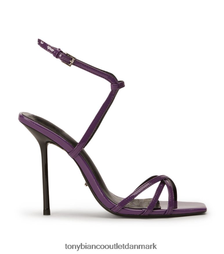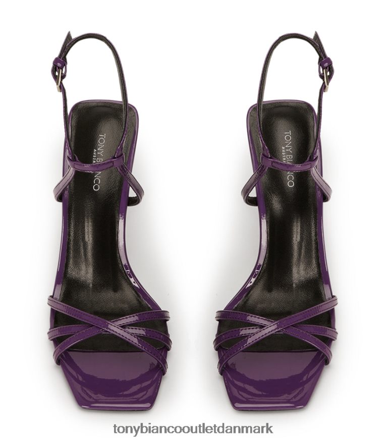 sig hej til nomad, en slående lilla lakhæl med en ultrahøj stilethæl, en flatterende overdel med stropper og en slank firkantet tåform. sæt sammen med din yndlings festkjole til dit næste look.