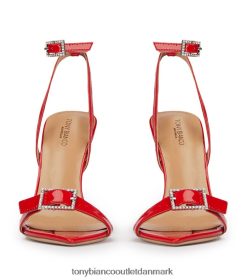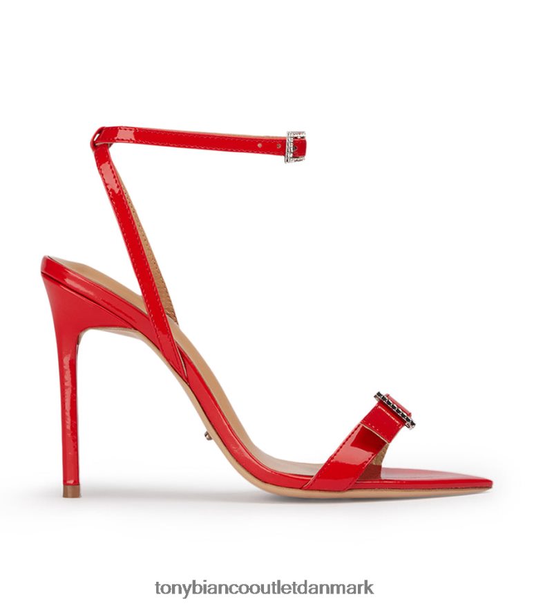 Den perfekte stilethæl er her. mød mopsy, en fed rød patenthæl med et spidstådesign og en slank ankelrem. afsluttet med et dekorativt diamantspænde foran og ankel.