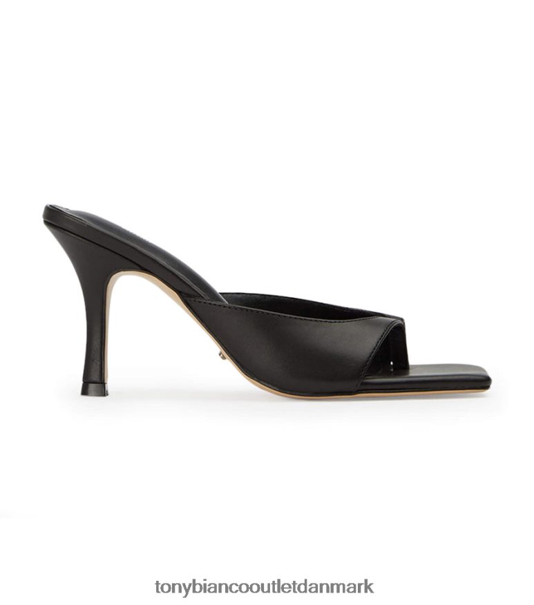 det er let elegance denne sæson med crystle sorte lædermuldyr. med et forenklet design, krumningen af overdelen, parret med den subtile string-rem gør dette til en ubesværet tilføjelse til din samling. sæt sammen med jeans og en hvid t-shirt og hold det smart.