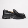 skiller sig ud fra mængden med vores wiz loafer. Dette design fremviser et skinnende sort læderydre og har en overdrevet chunky sål med en slank afrundet tåform, en højudskæring vamp og er afsluttet med en læderoverdel, foring og polstret fodseng.